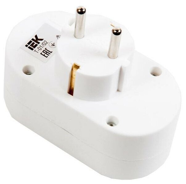 Разветвитель электрический IEK Т-01/02, 16 А, 2 гнезда, белый