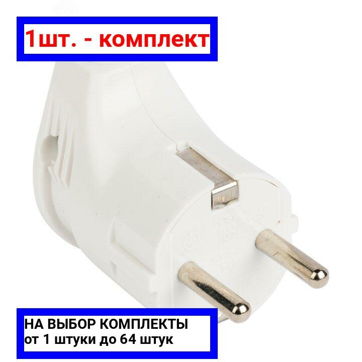 12шт. - Вилка угловая с заземлением белая 16А 250В / EKF; арт. AVY16-10; оригинал / - комплект 12шт