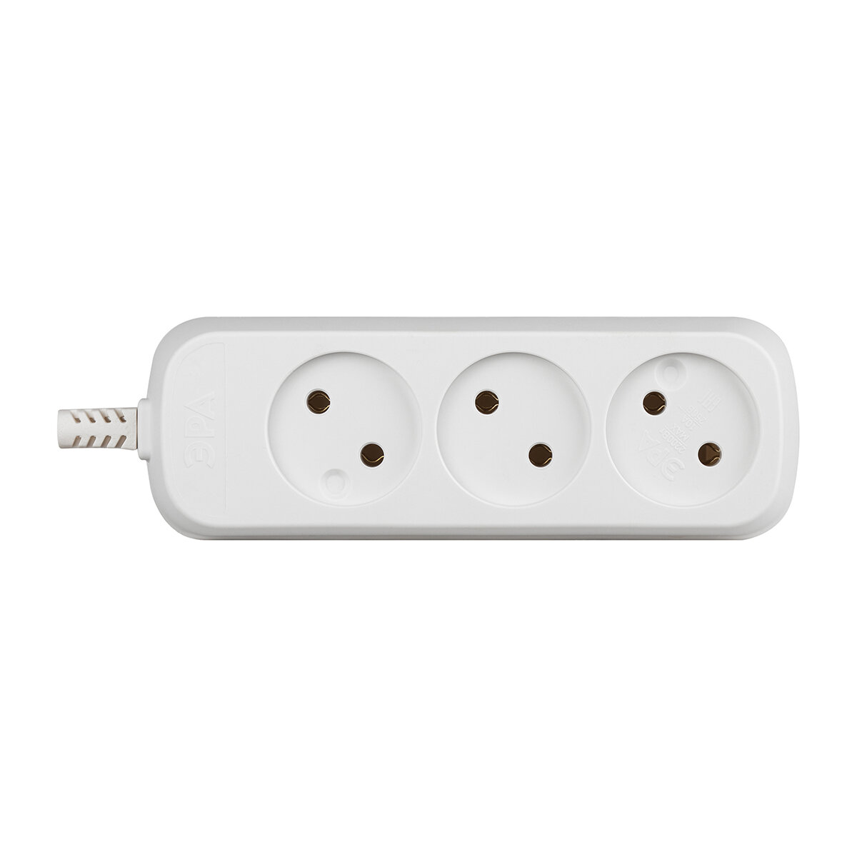 Тройник для розетки электрический с заземлением 16А, белый