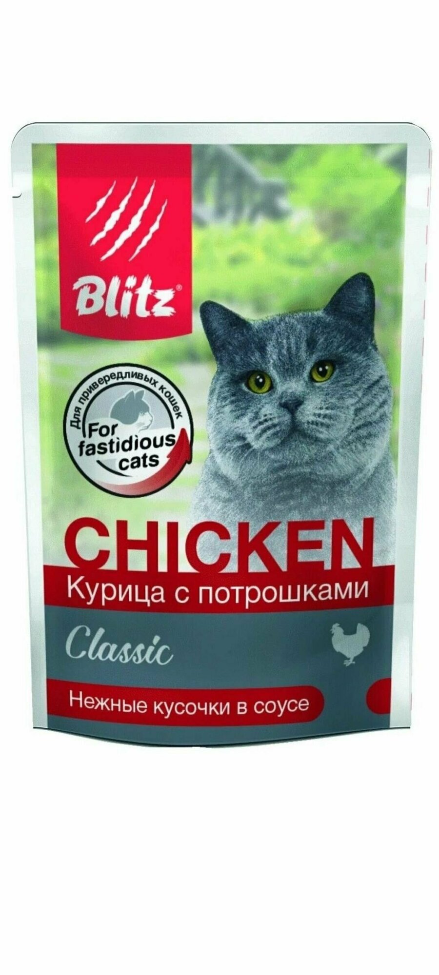 Blitz Classic Cat Adult влажный корм для взрослых кошек, с курицей и потрошками в соусе, в паучах - 85 г x 24 шт