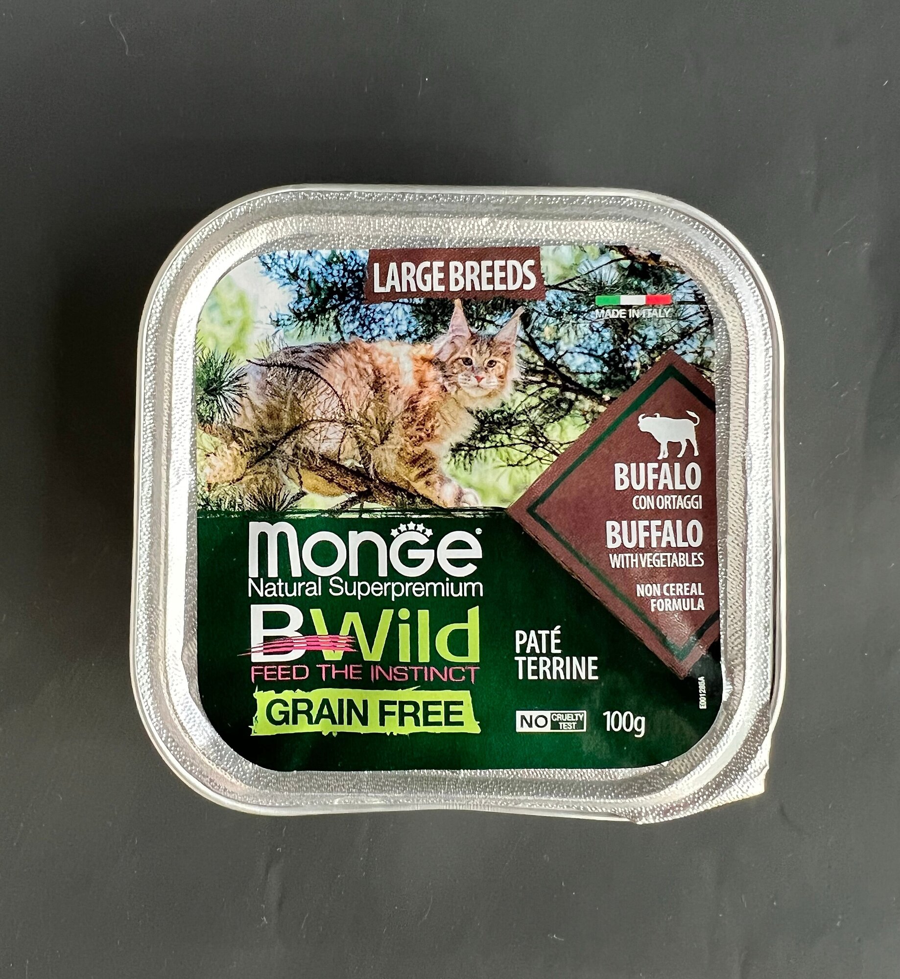Купить MONGE 100гр Корм для кошек крупных пород из буйвола с овощами беззерновые BWild