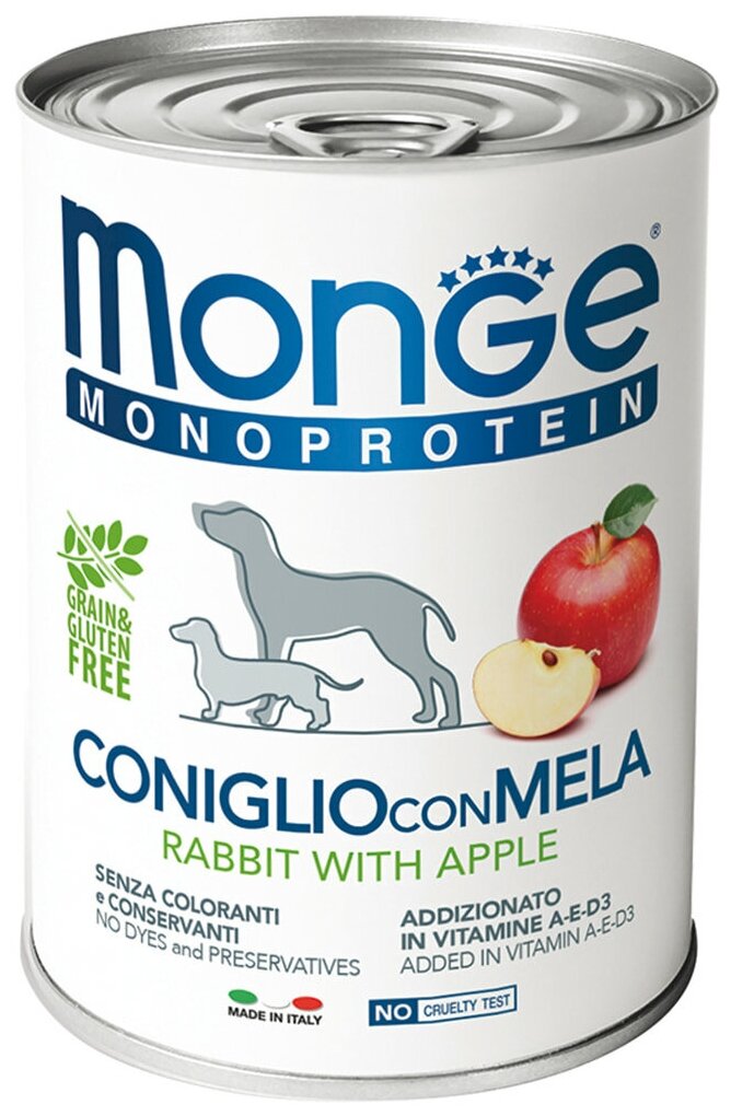 Влажный корм для собак Monge Dog Monoprotein CONIGLIO con MELA, беззерновой, кролик, с яблоком, 12 шт. х 150 г