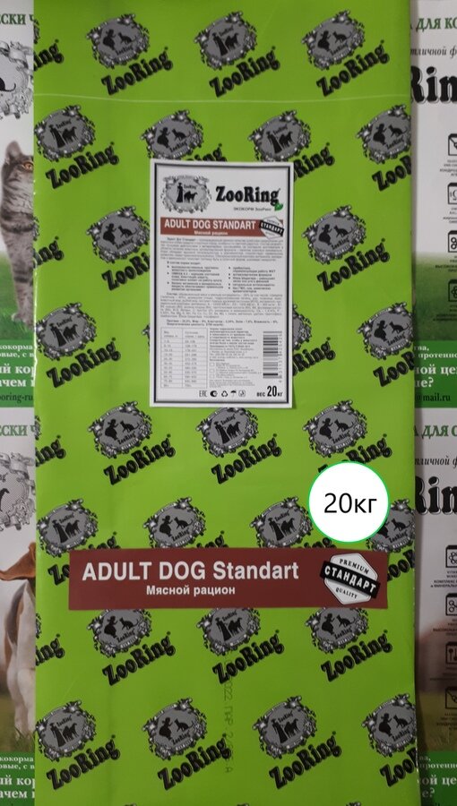 СохранитьСухой корм для собак ZooRing Standart, мясной рацион 20 кг интересное: