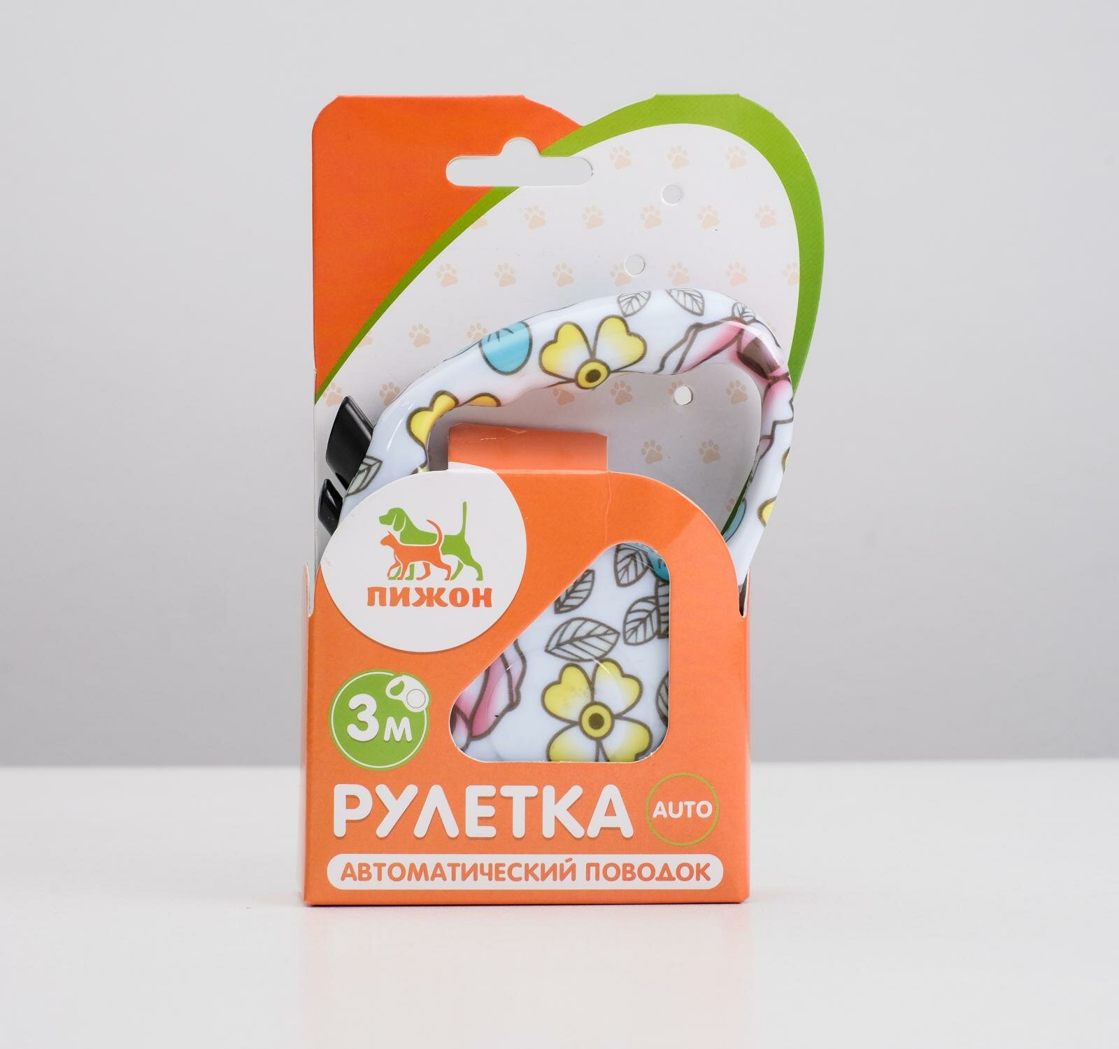 Купить Рулетка с принтом "Стрим", 3 м, вес животного до 12 кг, расцветка нежные цветы
