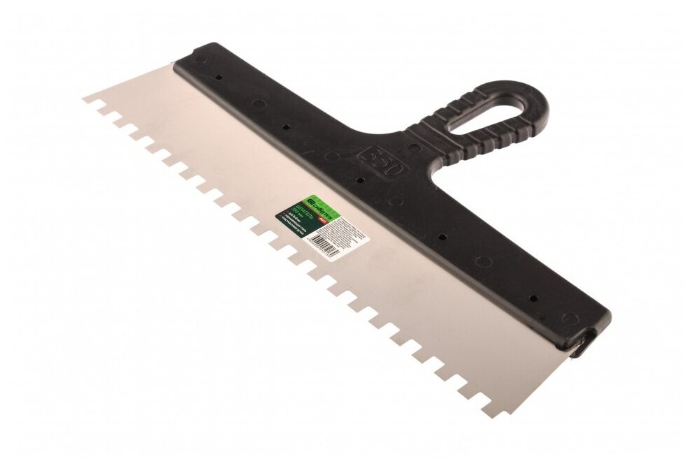 Шпатель из нержавеющей стали, 350 мм, зуб 6х6 мм, пластмассовая ручка// Сибртех