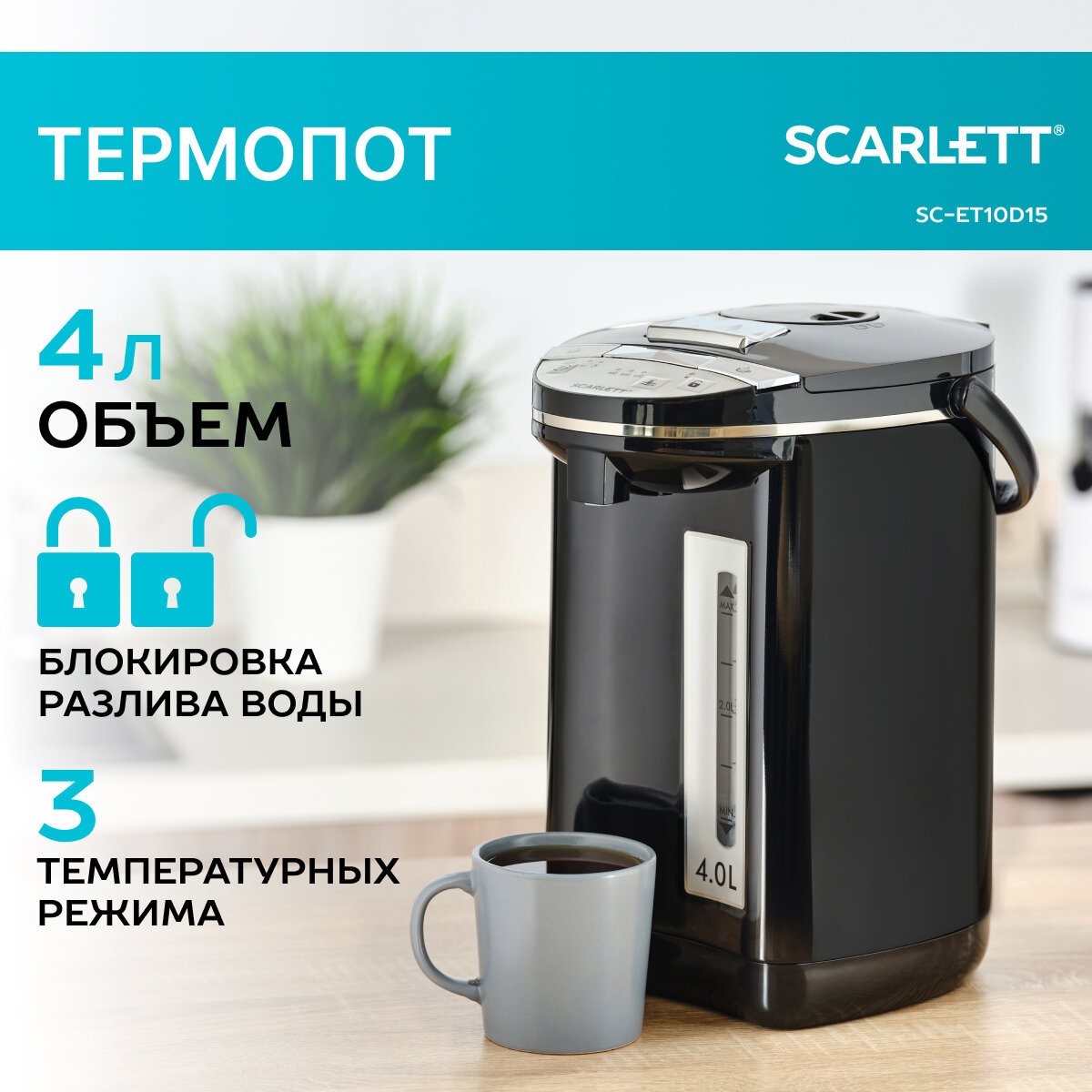 Термопот SCARLETT SC-ET10D15, 750Вт, 4л, черный, 1494126