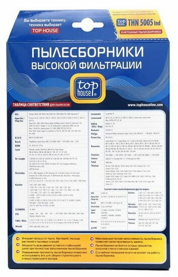 Аксессуары для пылесосов Top house Нетканые пылесборники Top House THN 5005Ind с высоким уровнем фильтрации, 3 шт.
