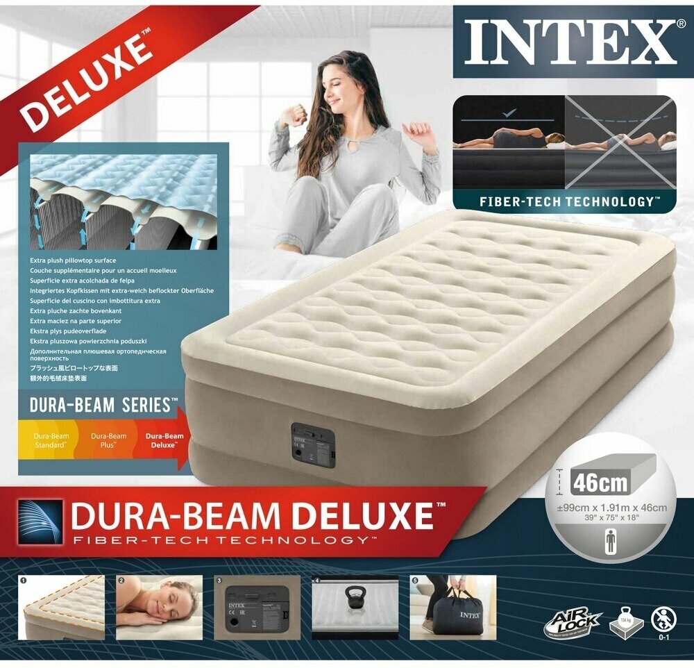 INTEX Надувная кровать с насосом Ultra Plush Twin, 99*191*46 см 64426