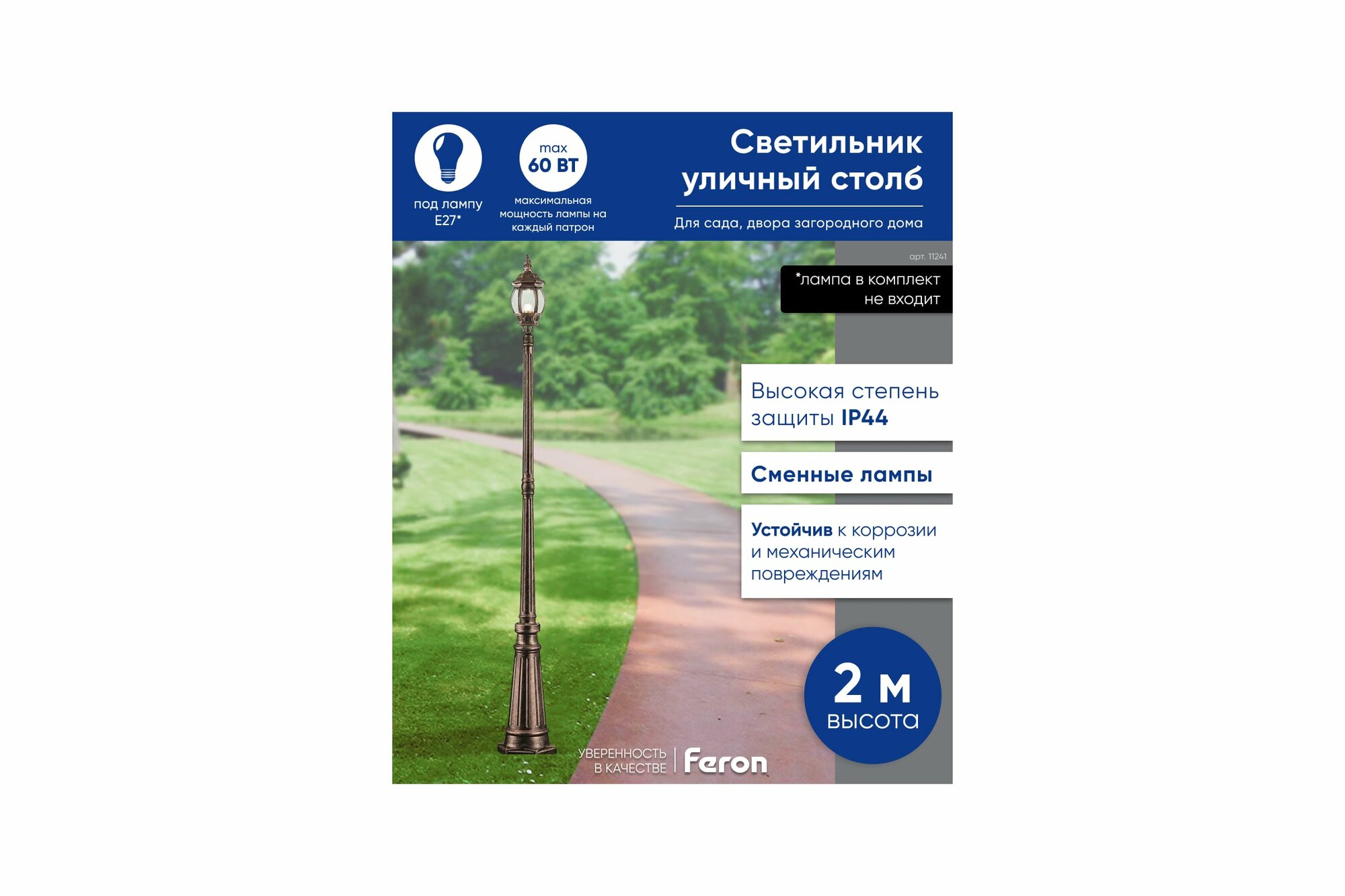 Столб фонарный уличный Feron 11241, Бронза, E27