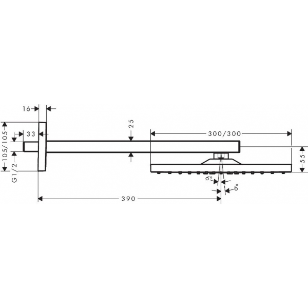 HG Raindance Верхний душ, 300х300мм, 1 jet, с настенным держателем 390мм, цвет: черный матовый