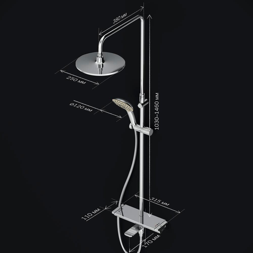 F0770A500 Spirit V2.0 душ.система, набор: смеситель д/ванны/душа с термостатом, верхн. душ d 250 мм,