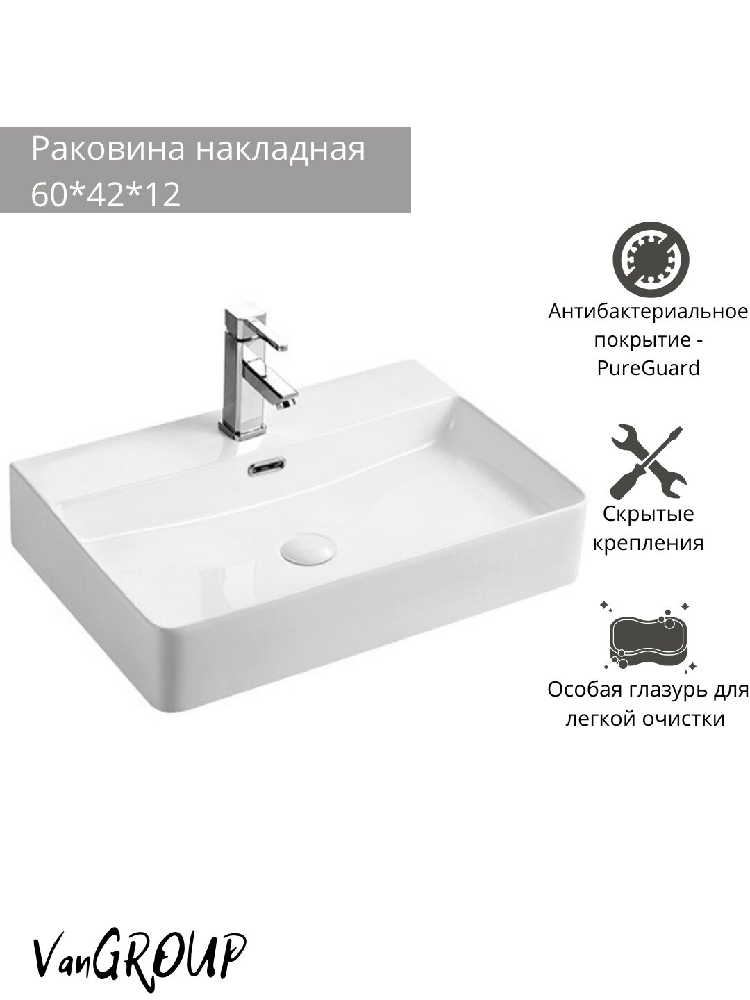 Раковина накладная WeltWasser 60/42/12 WW ELBACH 2173 10000003865