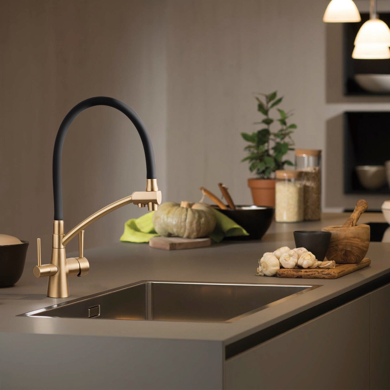 Смеситель для кухни Gappo G4398-1, с подключением к фильтру, однорычажный, черный/бронза
