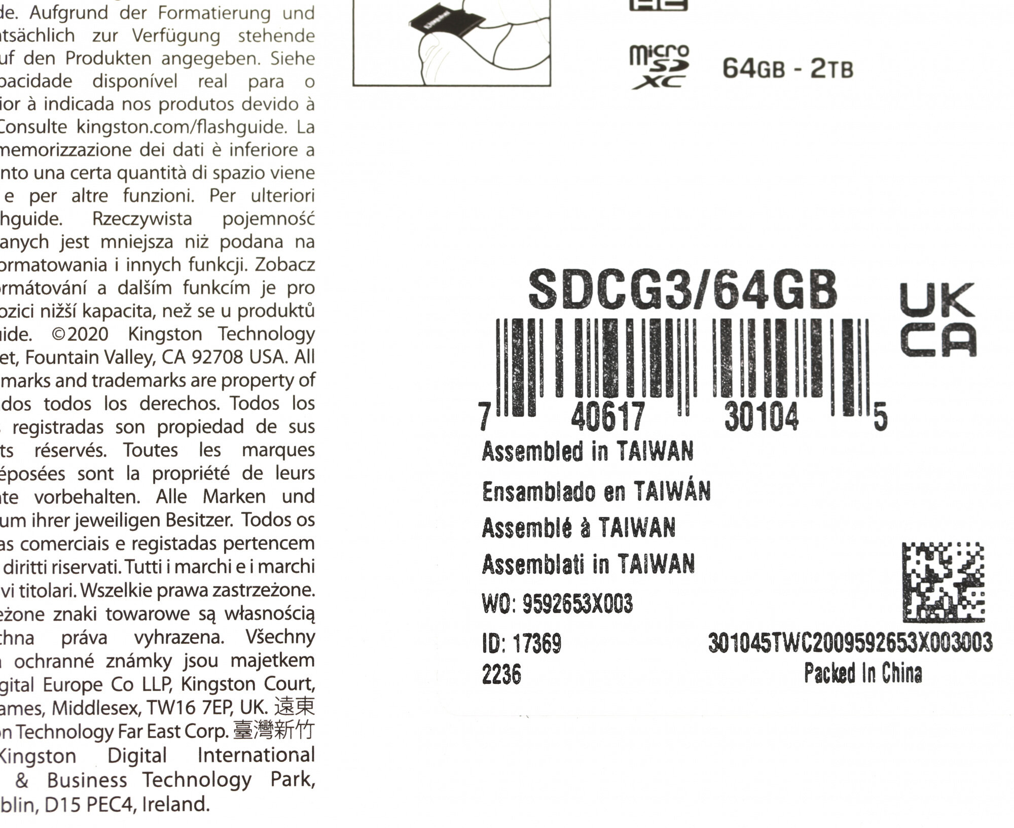 Карта памяти Kingston Canvas Go! Plus microSDXC UHS-I Cl10 +ад, SDCG3/64Gb, 1 шт.