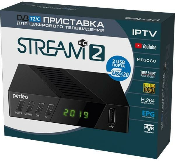 Купить Perfeo DVB-T2/C приставка STREAM-2 для цифр.TV, Wi-Fi, IPTV, HDMI, 2 USB, DolbyDigital, пульт ДУ