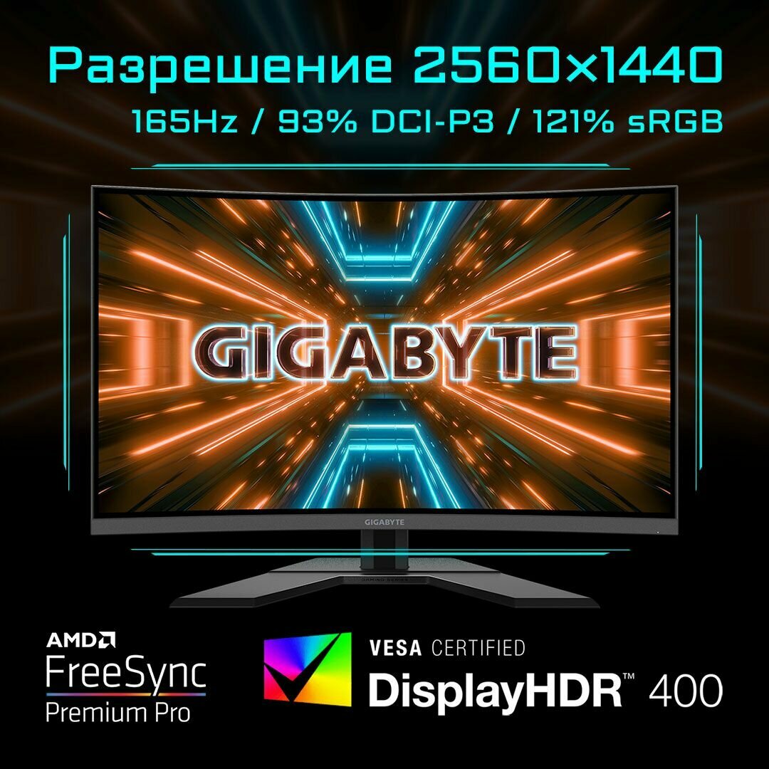 Монитор GIGABYTE G32QC, 2560x1440, 165 Гц, *VA, черный