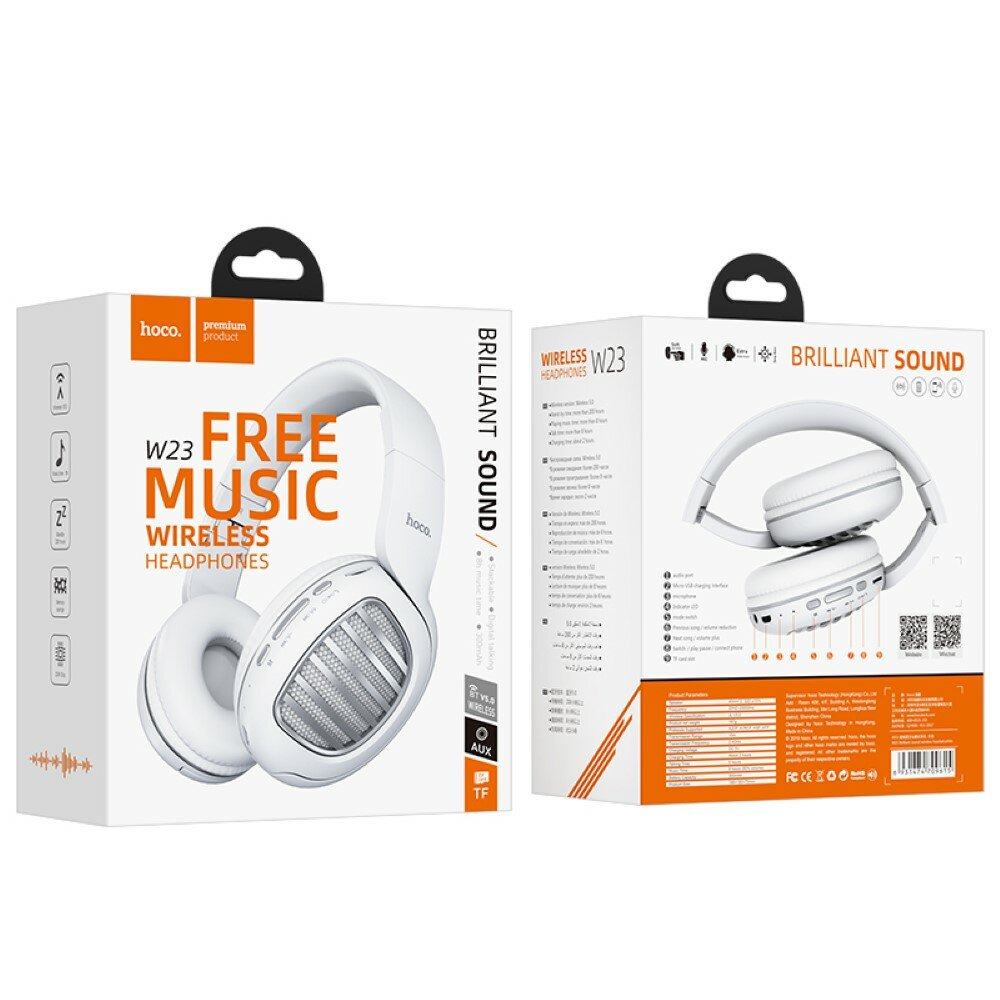 Наушники полноразмерные беспроводные Hoco W23 (Bluetooth) белый