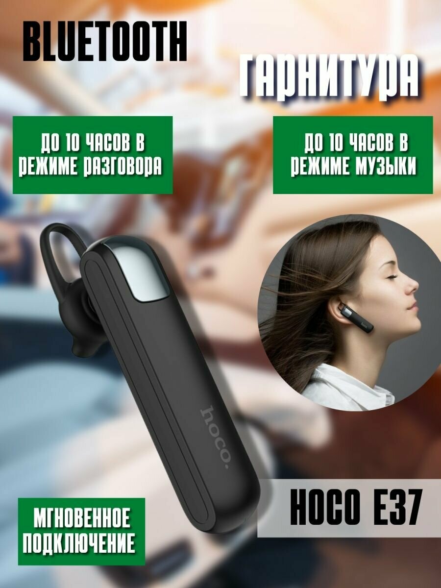 Bluetooth беспроводная моно гарнитура Hoco E37 Gratified Black микрофон с наушником, hands free - черный