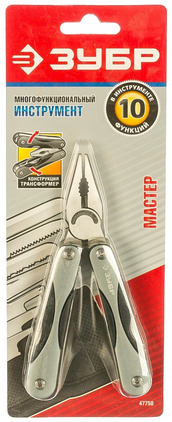Мультитул Зубр Мастер, 10 функций, серый [47750]
