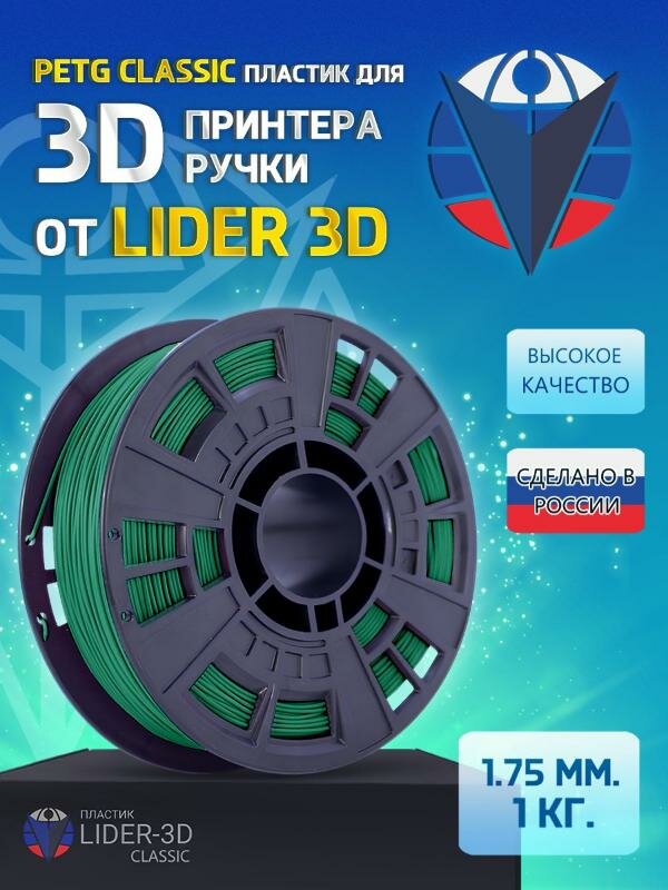 Купить PETG пластик LIDER-3D Classic для 3D принтера 1.75 мм, Зелёный, 1 кг