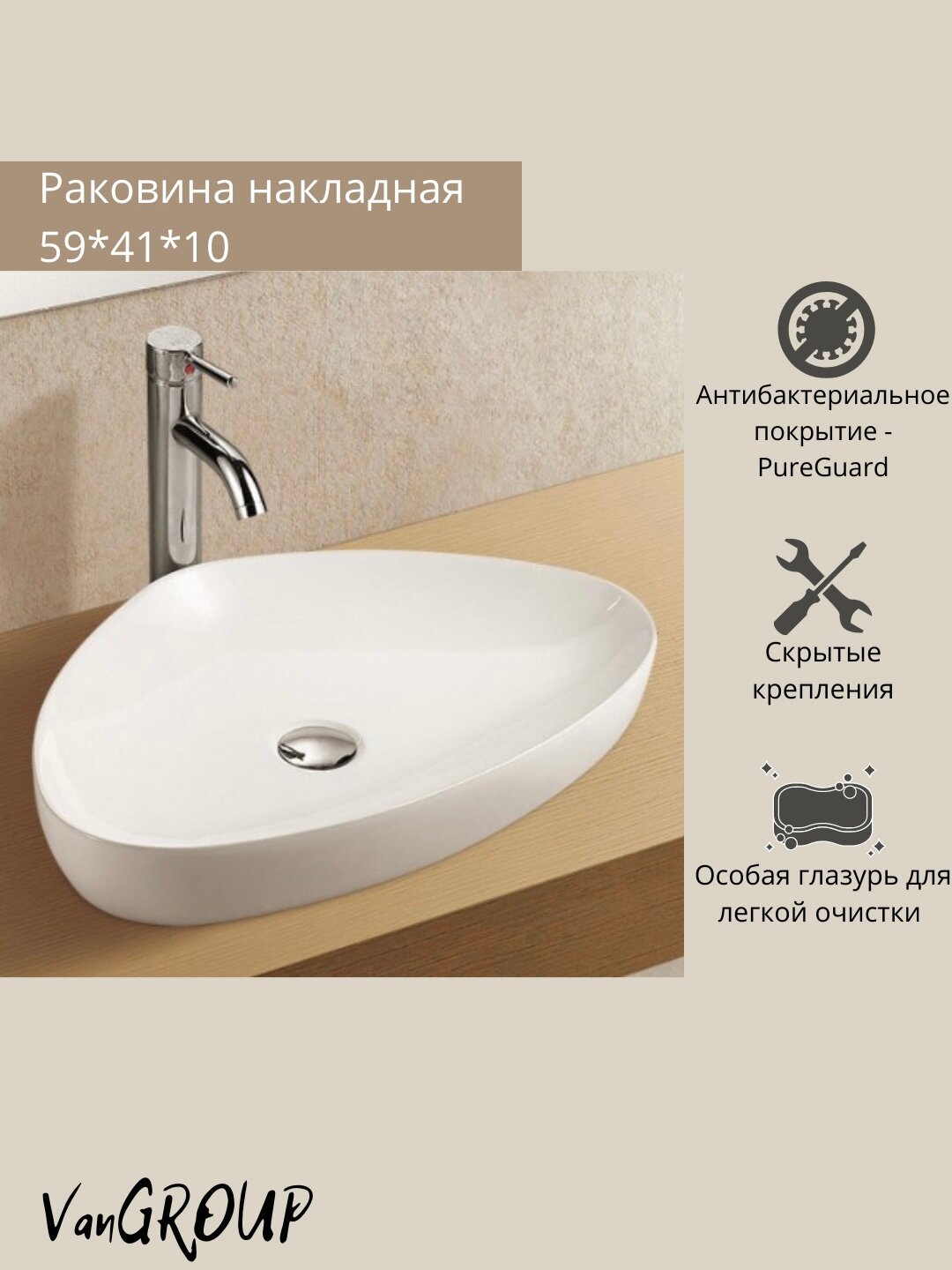 Раковина накладная WeltWasser 59/41/10 WW ELBACH 1131 10000003849
