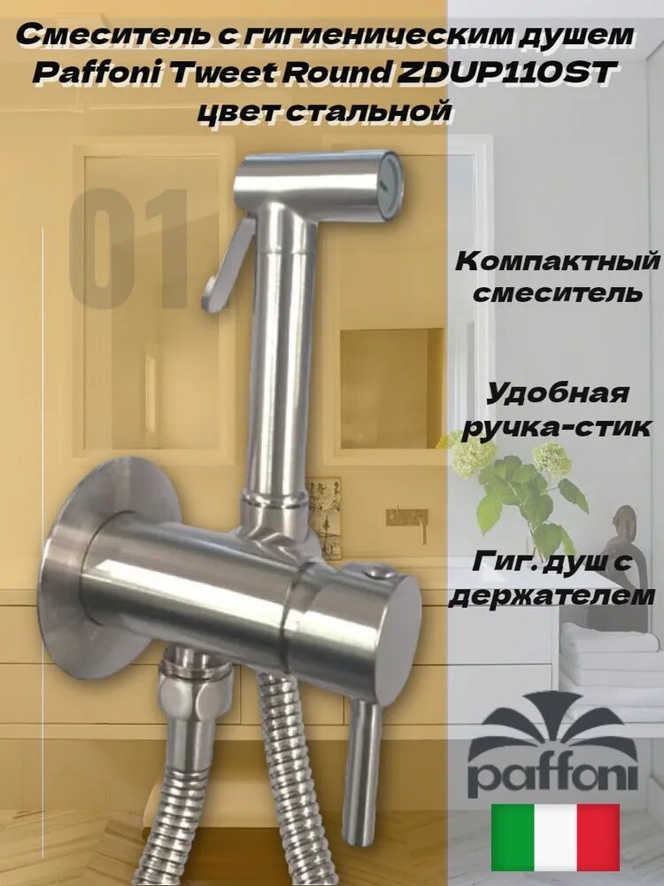 Paffoni Гигиенический душ Paffoni Tweet Round ZDUP110ST со смесителем, с внутренней частью, сталь