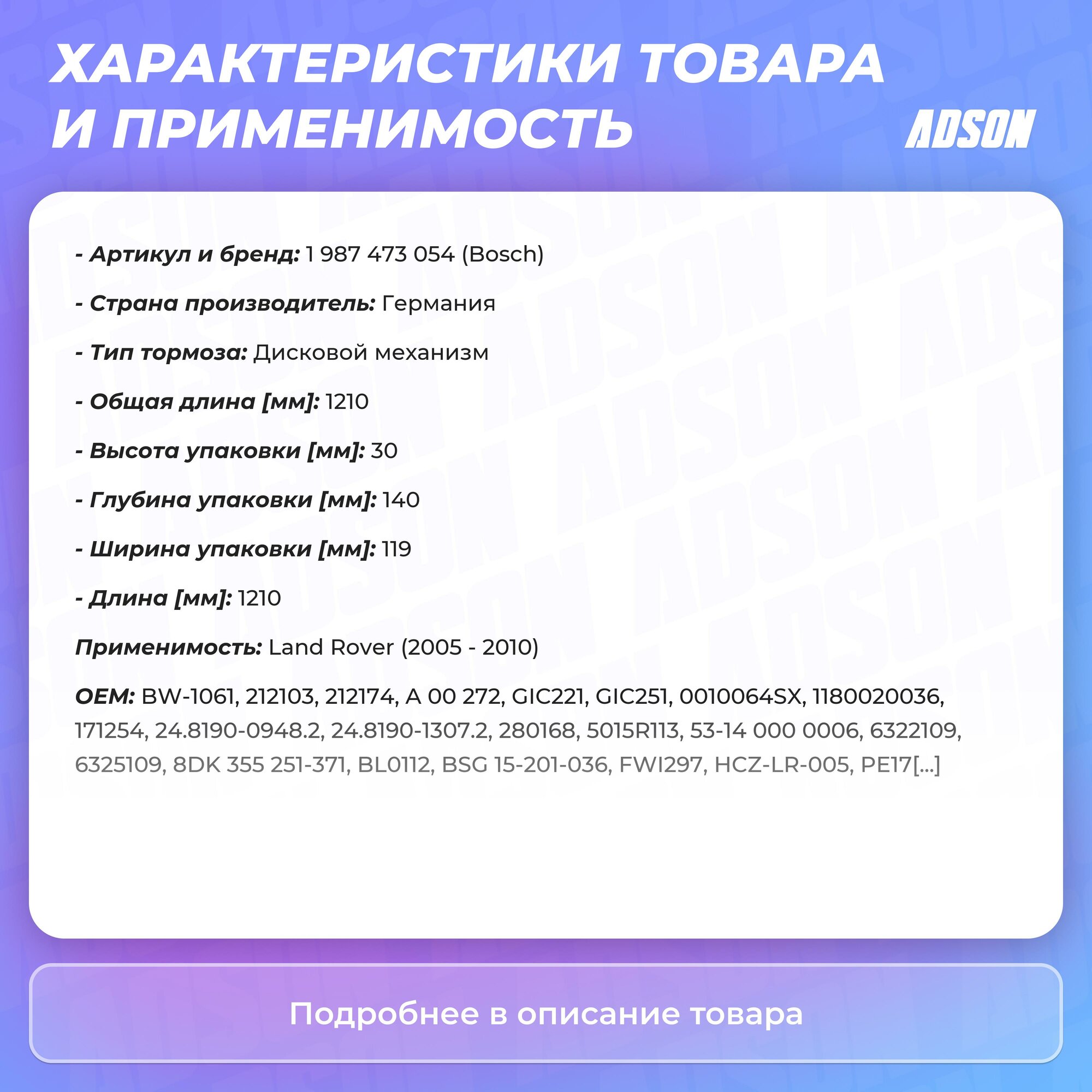 1 987 473 054_[Sem500026] !Датчик Износа Колодок Пер Land Rover Range Rover Sport 05-09 L=1210 Bosch арт. 1 987 473 054