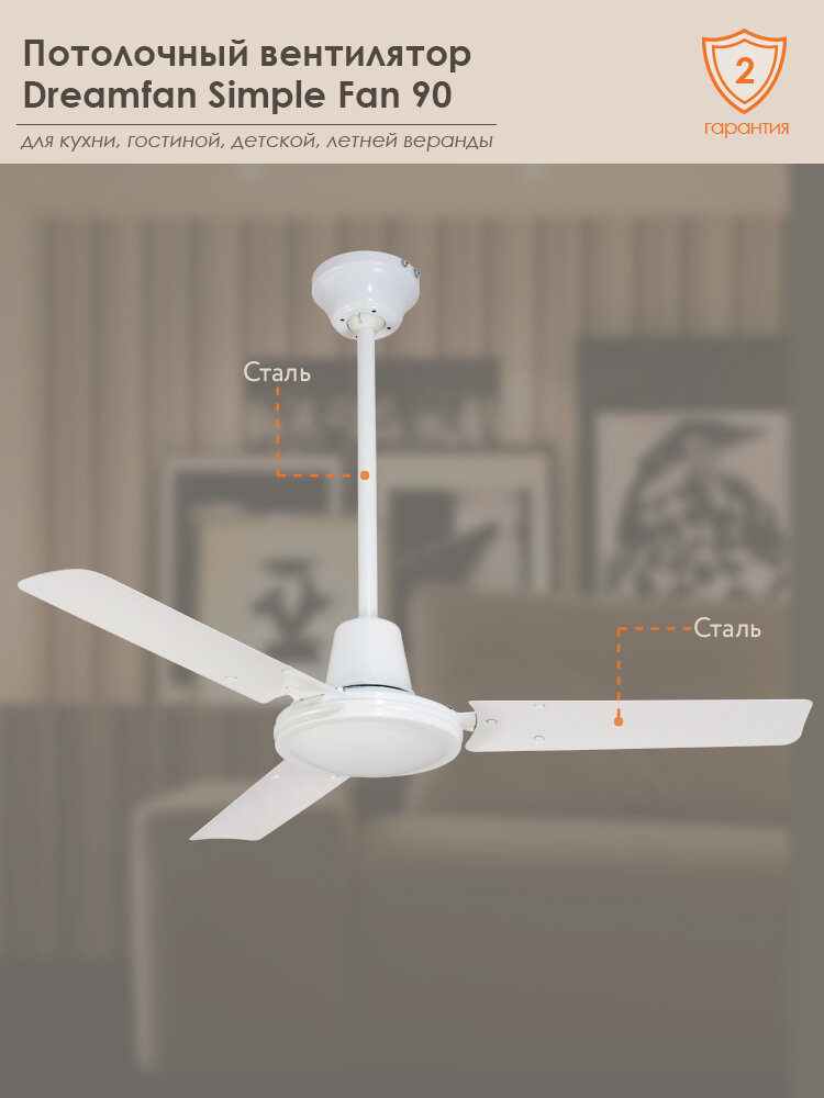 Потолочный вентилятор Dreamfan Simple 90 интересное: