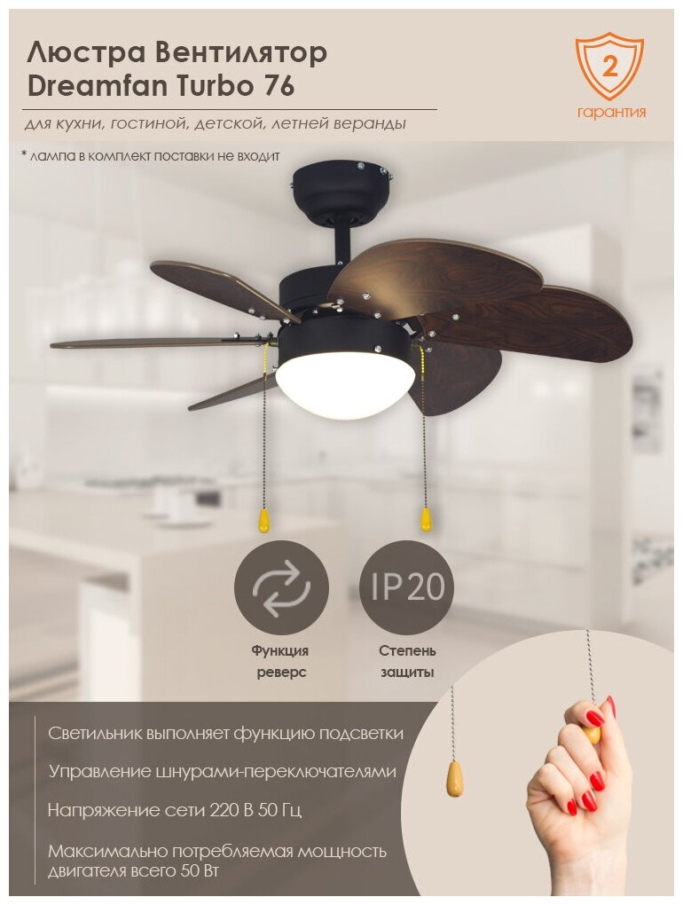 Потолочный люстра-вентилятор Dreamfan TURBO 76 интересное: