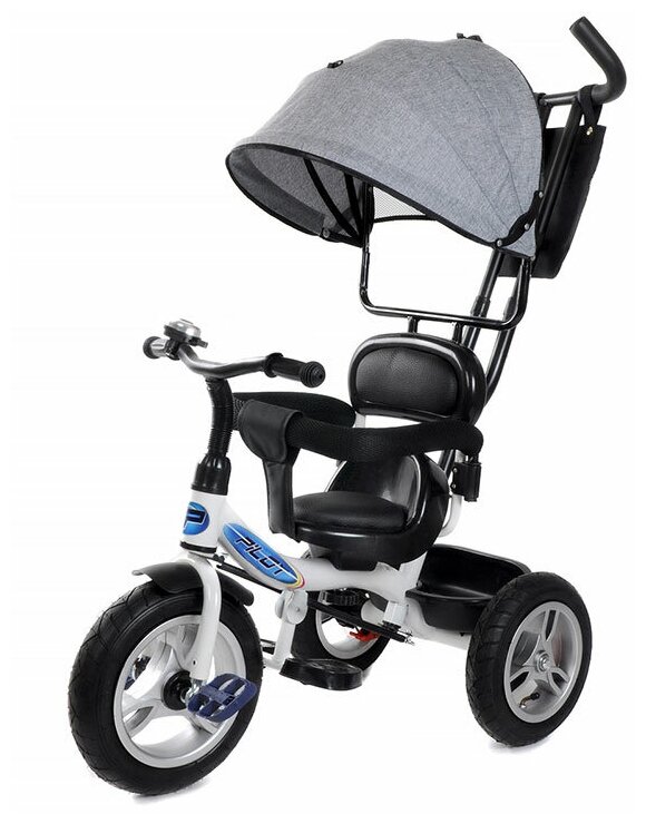 Велосипед 3-х колес.с руч.управ. цв.серый, надув.колеса 12 и 10дюйм.поворот.сиденье, рег. PTA1GR