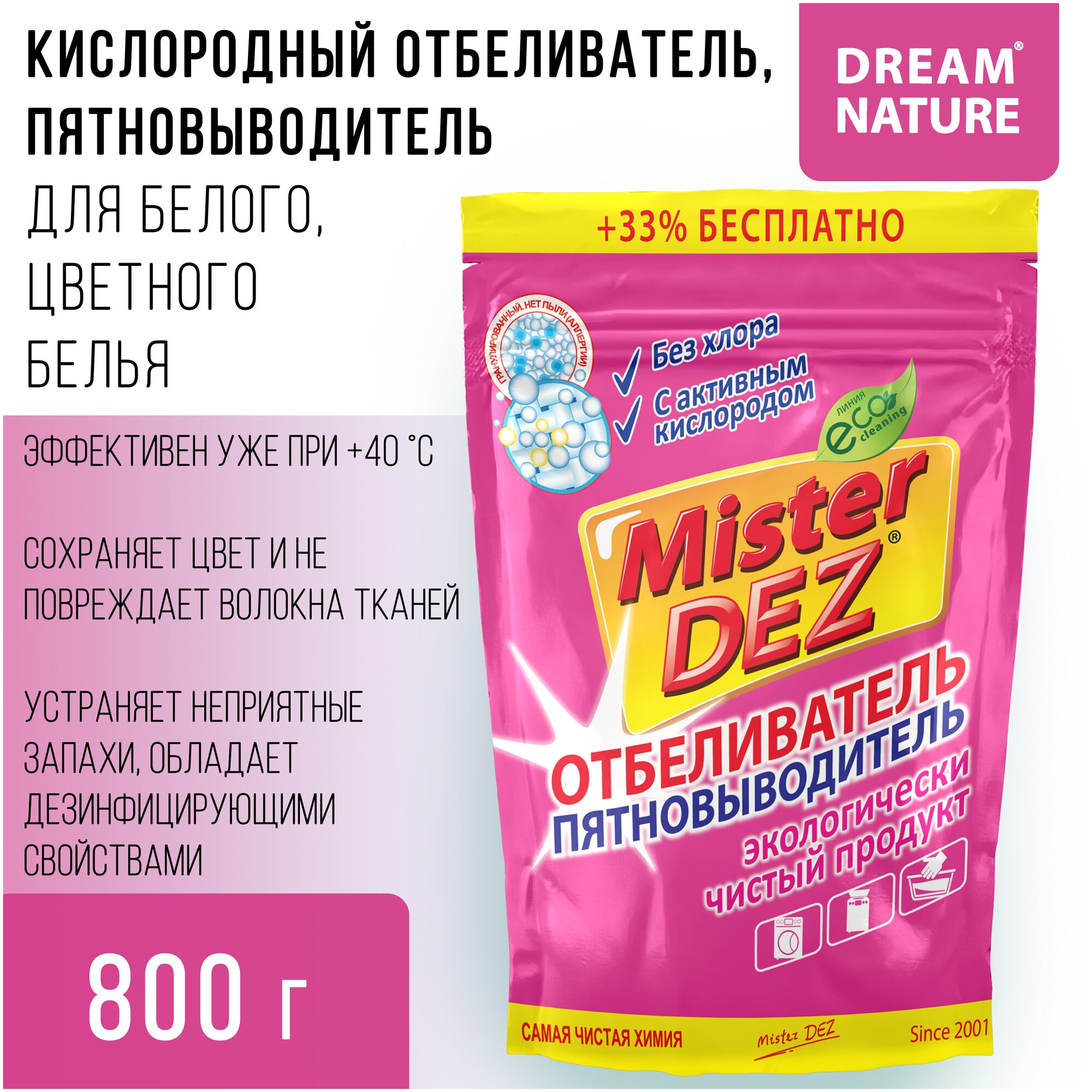 Отбеливатель-пятновыводитель Mister Dez с активным кислородом Eco-Cleaning, 800 г
