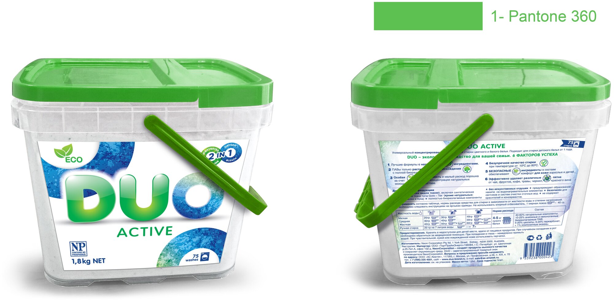Стиральный порошок DUO ECO ACTIVE для стирки цветного и белого белья , концентрированный 1,8 кг, 75 стирок