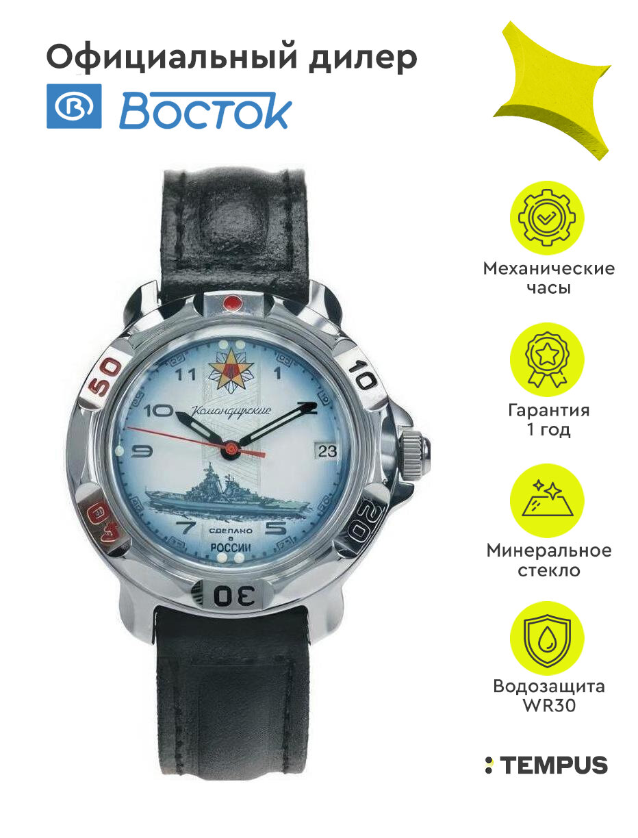 Мужские наручные часы Восток Командирские 811428-classic, натуральная кожа, черный