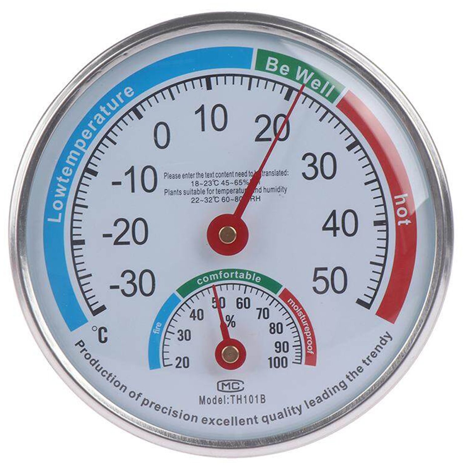 | Плюсы: | Цветной, достаточно большой. Хорошо понимаемые шкалы, разделённые для удобства на секторы, подставка для размещения на столе. Не нужно питания. Можно поставить в комнате и на улице (на балконе). |