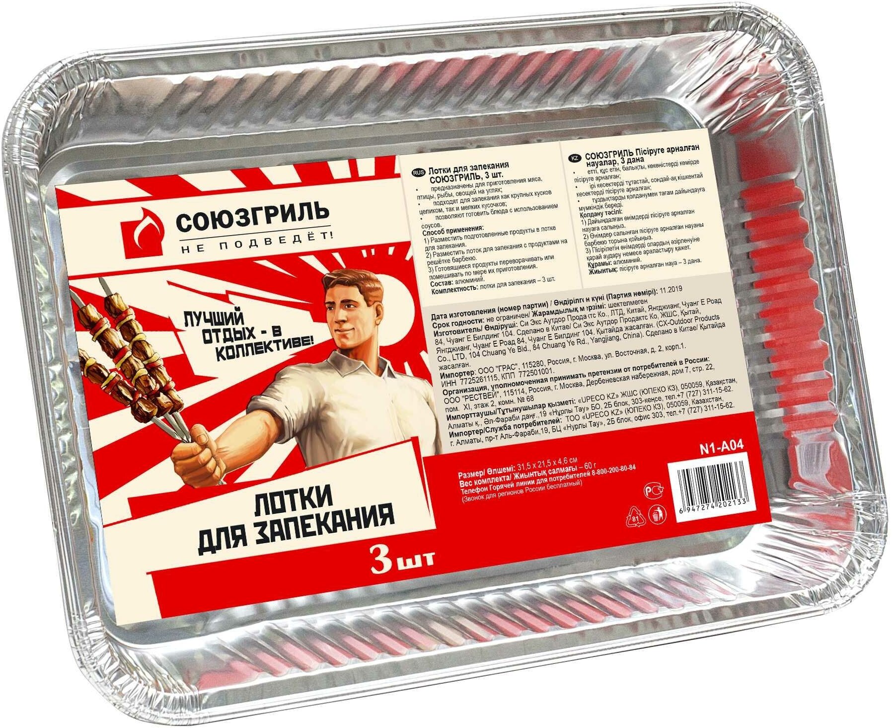 Союзгриль Лоток для запекания одноразовый, алюминий (3 шт.) серебристый интересное: