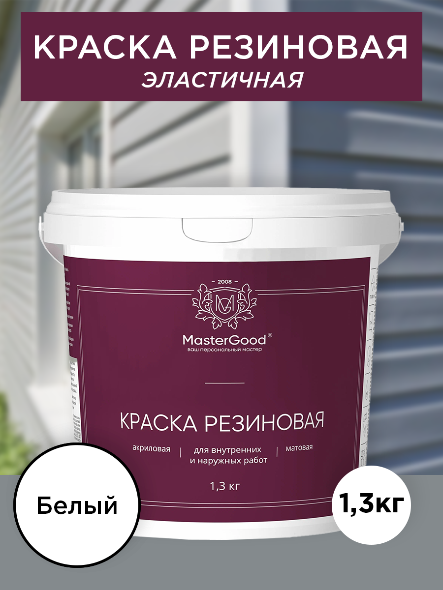Купить Краска резиновая эластичная Master Good/Мастергуд , акриловая, для кровли, фасадов, цоколя, водостойкая, белая 1,3 кг