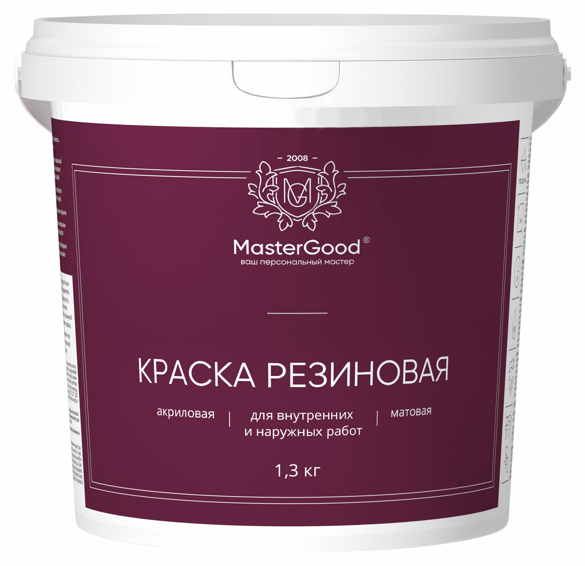MasterGood Краска резиновая моющаяся акриловая для помещений с повышенной влажностью Белая (1,3 кг)