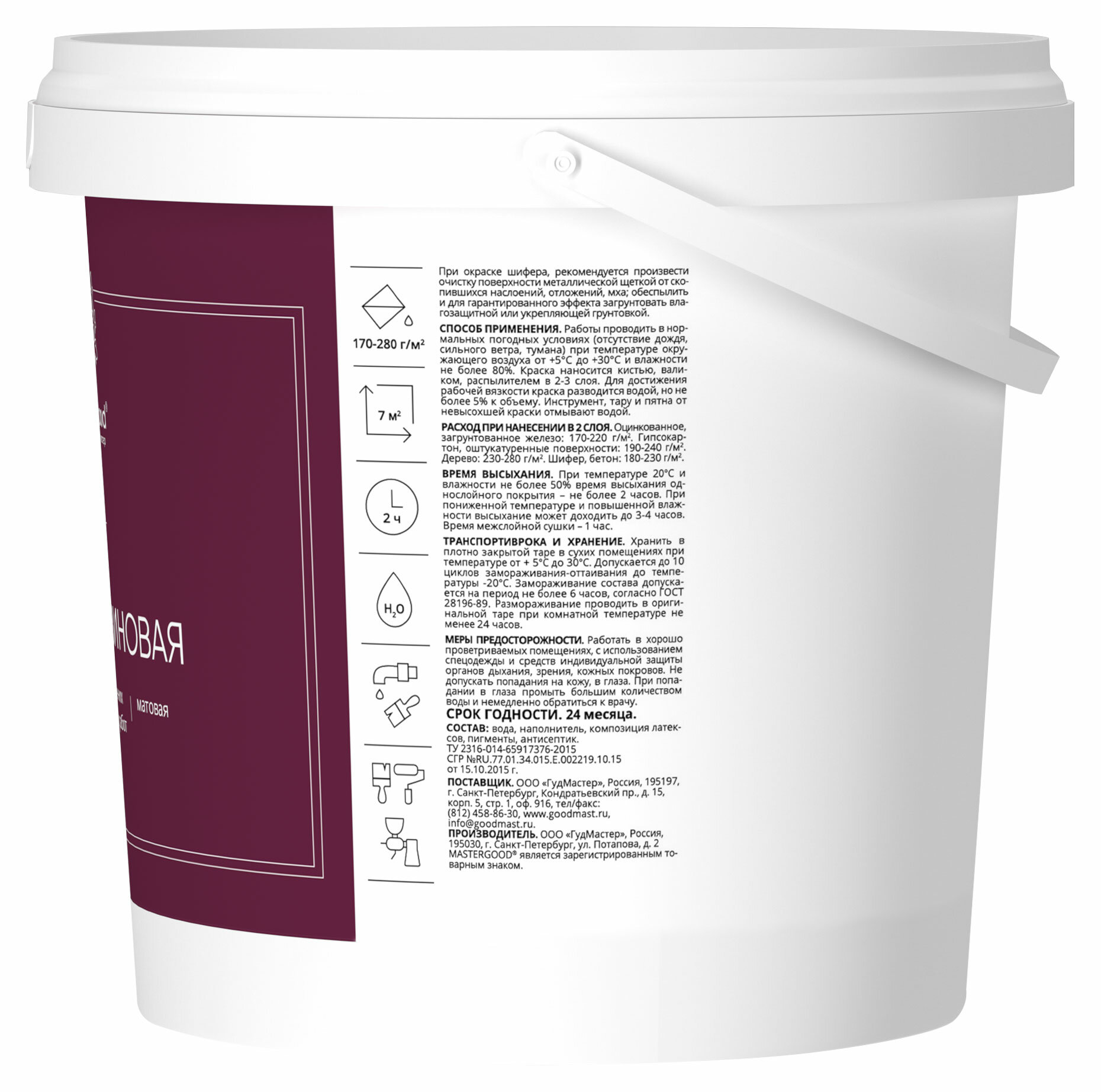 MasterGood Краска резиновая моющаяся акриловая для помещений с повышенной влажностью Вишня (красное вино RAL 3005)(1,3 кг)