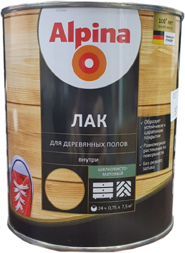 Лак для деревянных полов Alpina полов алкидно-уретановый шелковисто-матовый 0,75 л (1/6) ""