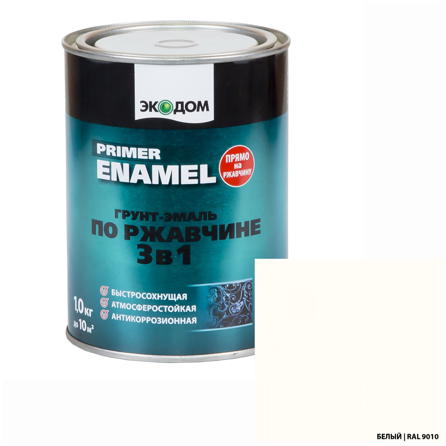Грунт-эмаль по ржавчине 3в1 экодом (RAL 9010 белый / 0.9кг)