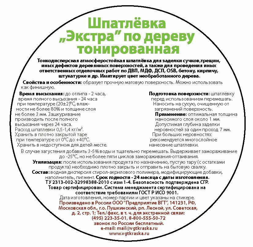 VGT Шпатлёвка “Экстра” по дереву дуб 0.3 кг