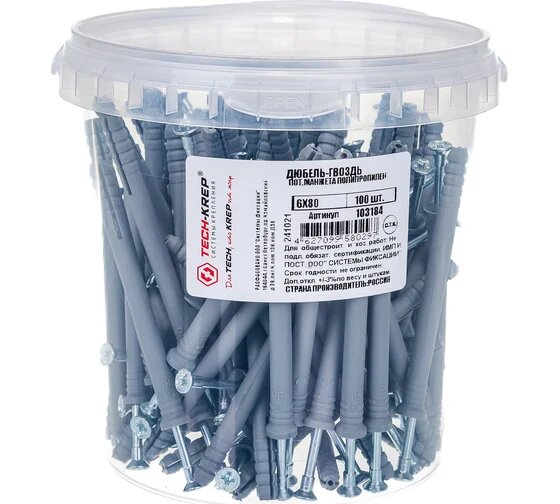 Ниже Вы можете прочитать отзывы на Tech-Krep Дюбель-гвоздь 6x80 пот. манжета полипропилен 100 шт - ведро 103184, ознакомится с подробными характеристиками, посмотреть интересные обзоры и фотографии на Tech-Krep Дюбель-гвоздь 6x80 пот. манжета полипропилен 100 шт - ведро 103184.
