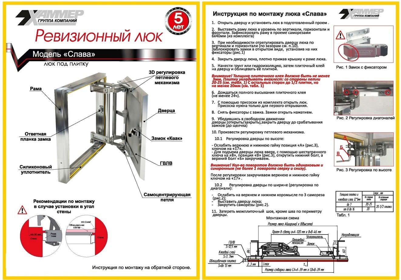| Дополнительная информация | Люк усиленный под керамогранит. Глубина петли в закрытом состоянии 86мм |