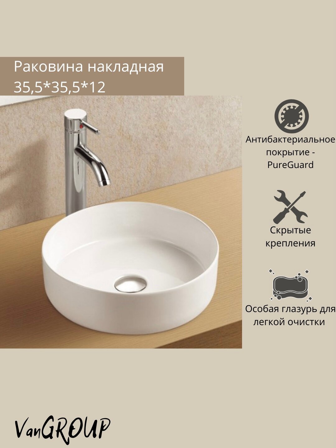 | Плюсы: | Удобная в меру глубокая раковина, без внешних дефектов. Ровного белого цвета. Хорошо упакована, плотная коробка, и сама раковина в тканевом мешке. Идеально встаёт на деревянную столешницу.. на момент покупки ее цена идеальна. |
