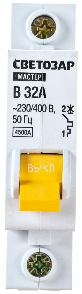 Выключатель СВЕТОЗАР автоматический, 1-полюсный, ″B″ (тип расцепления), 32 A, 230 / 400 В