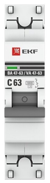 Выключатель автоматический модульный 1п C 63А 6кА ВА 47-63 PROxima EKF mcb4763-6-1-63C-pro mcb4763-6 .