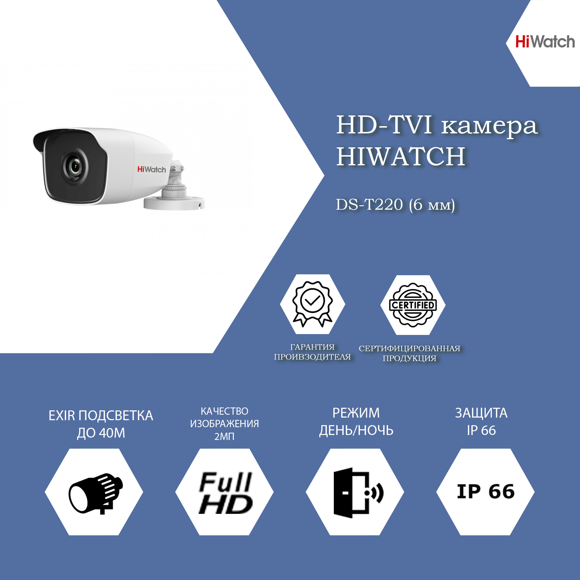 Видеокамера HiWatch DS-T220 (6 mm) .