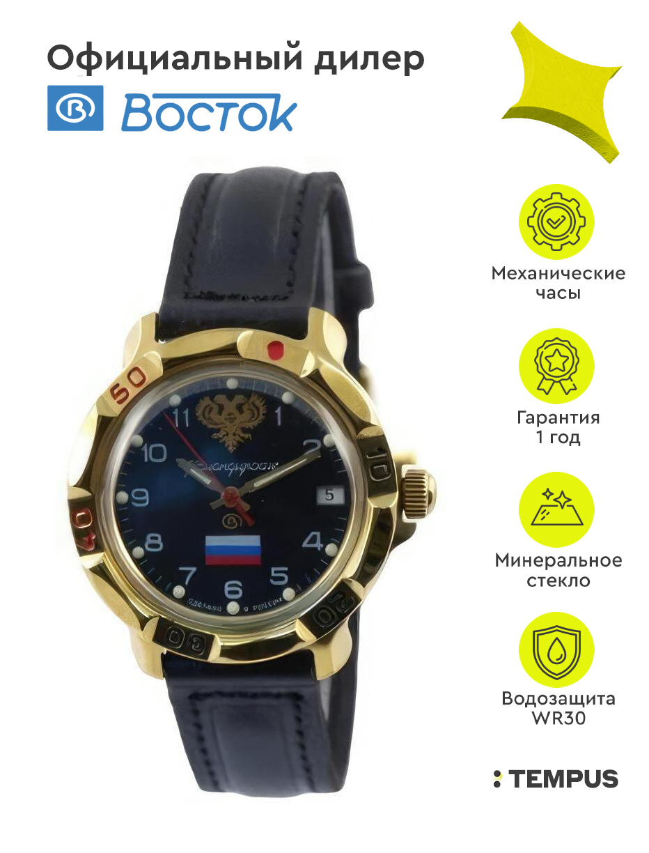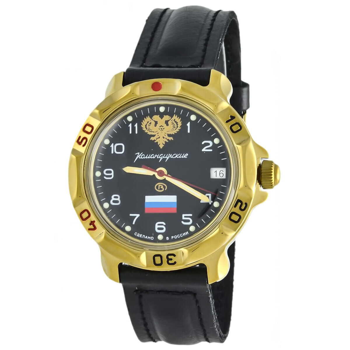 Мужские наручные часы Восток Командирские 819646-classic, натуральная кожа, черный
