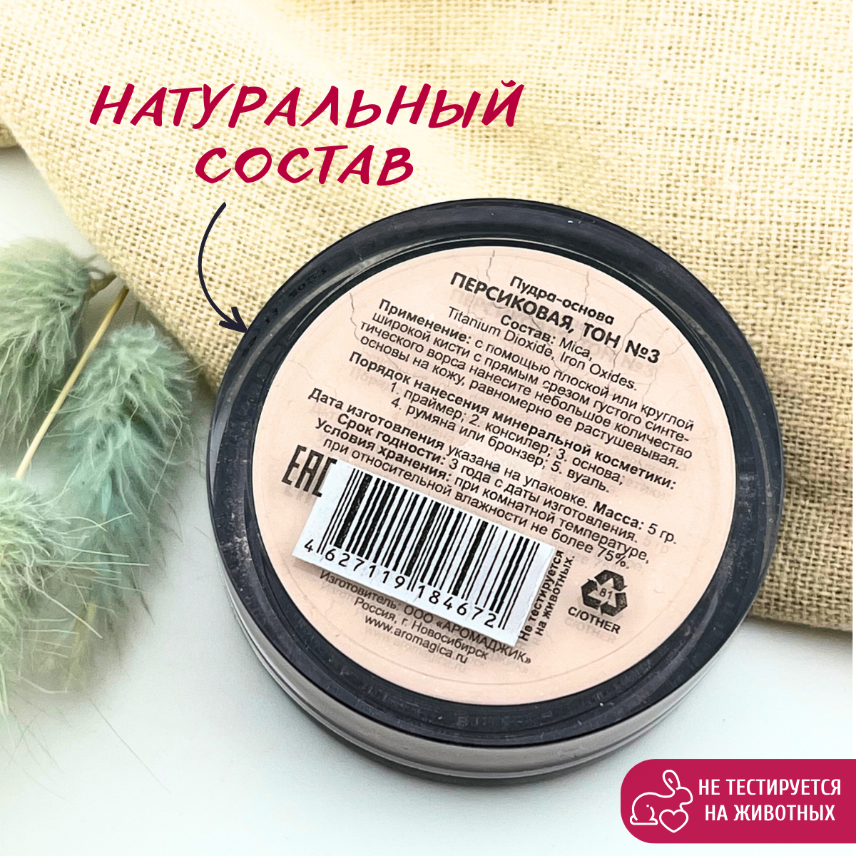 Пудра-Основа Тон№3 персиковая,с матирующим эффектом, SPF 10, TM ChocoLatte, 10 мл/5гр