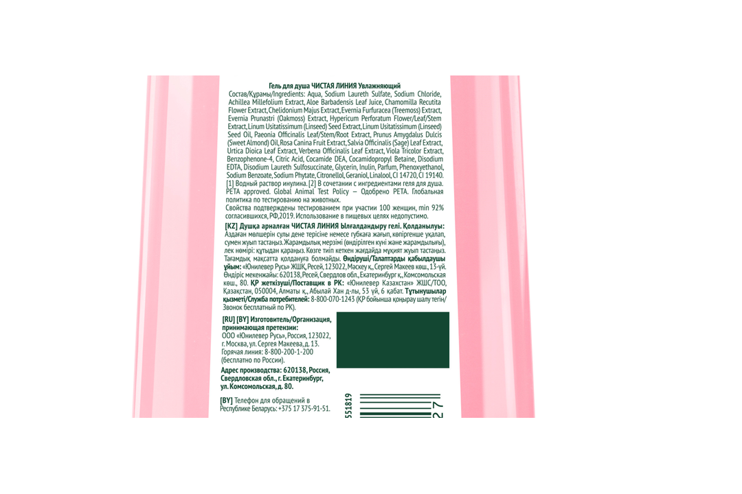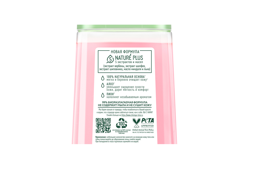 Купить Чистая Линия гель для душа увлажняющий на 100% натуральной основе пион и алоэ 250 мл